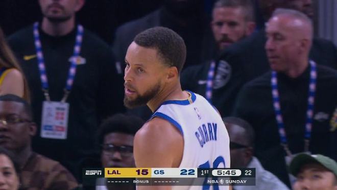 庫里此役早早開啟進(jìn)攻模式,他首節(jié)出戰(zhàn)8分鐘已經(jīng)高效5中4,其中外線三分3中2與罰球1中1。庫里外線命中兩記精彩三分,尤其是一度面對布朗尼的防守,庫里在身體失衡情況下依然命中三分引發(fā)喝彩,也是單節(jié)就轟下11分。