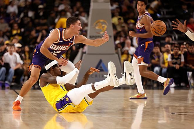 本場比賽中,雖然湖人遭遇了一場慘敗,但是球隊(duì)的鋒線大閘賈里德-范德比爾特(Jarred Vanderbilt)的表現(xiàn)其實(shí)還是相當(dāng)不錯的。范德比爾特全場出場21分10秒,投籃8中4,三分線外3中1,罰球1中0,得到了9分7籃板4助攻3搶斷的全面數(shù)據(jù),其中還包括了3個前場籃板,還有3次失誤和1次犯規(guī),正負(fù)值為-20。范德比爾特在進(jìn)攻端也是展現(xiàn)出了全面的得分能力,他不僅能夠在對手內(nèi)線制造威脅,他還命中了一記三分,而且他在傳球和策應(yīng)方面的表現(xiàn)也是具備一定的亮點(diǎn)的。作為球隊(duì)的防守大閘,范德比爾特在防守端的表現(xiàn)也是值得肯定的,他也是展現(xiàn)出了相當(dāng)不錯的個人防守能力和超強(qiáng)的防守積極性。至少在本場比賽中,范德比爾特的狀態(tài)也是比起前一場有了明顯的回暖。
